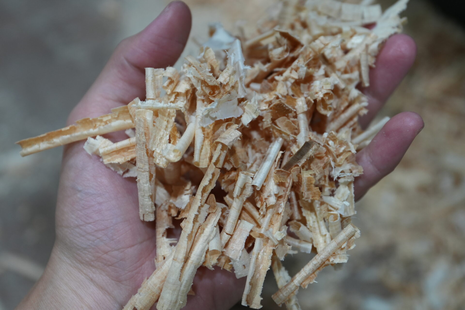 カウンターテーブルの天板に用いる材木を手押しカンナにかけていました。