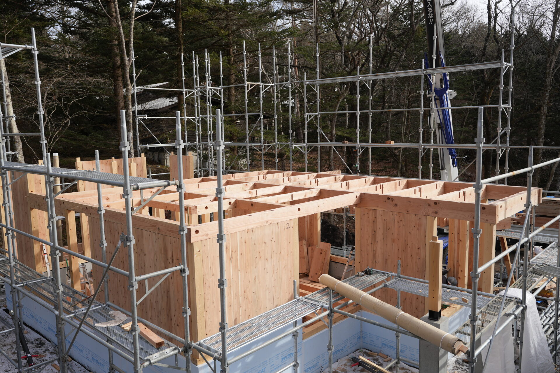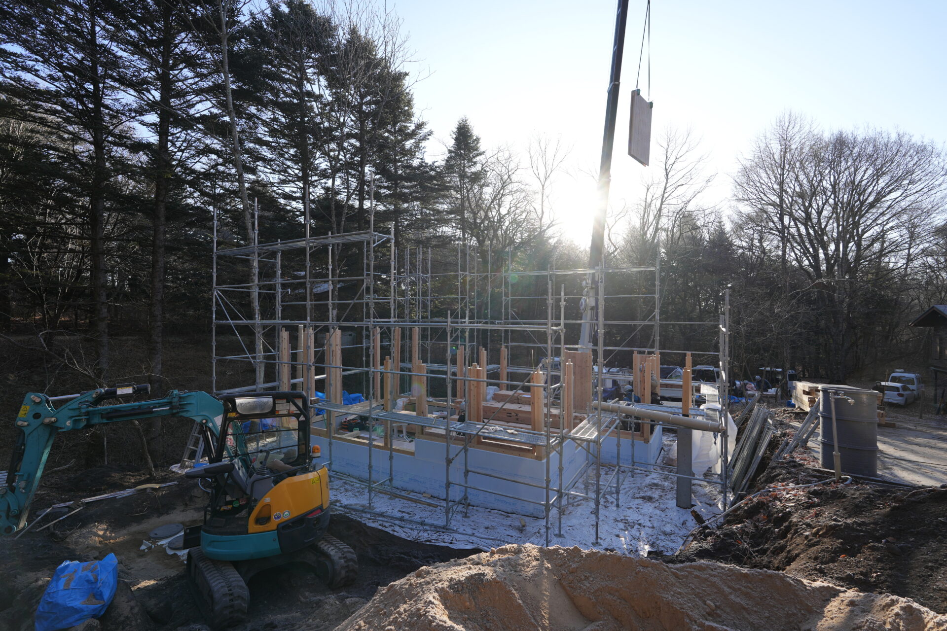 軽井沢町にて新築住宅の建て方を行いました。澄んだ冬の空気の中、柱や梁が一本ずつ組み上がり、図面の中の住まいが少しずつ立ち上がっていく大切な工程です。